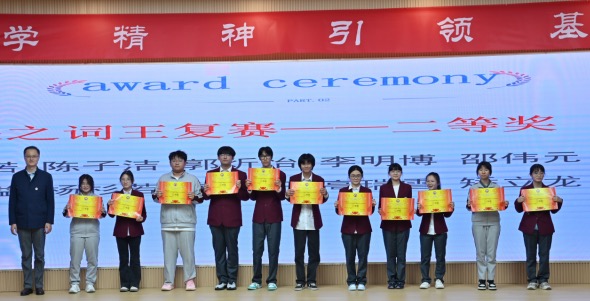 接下来,“利刃出鞘之词王初赛”“逆袭归来之词王复赛”“笔尖飘逸之外文书写比赛”的获奖者也一一揭晓,李新华校长、王宗强校长和封国校长亲自为获奖同学颁奖,现场掌声雷动,气氛热烈。
