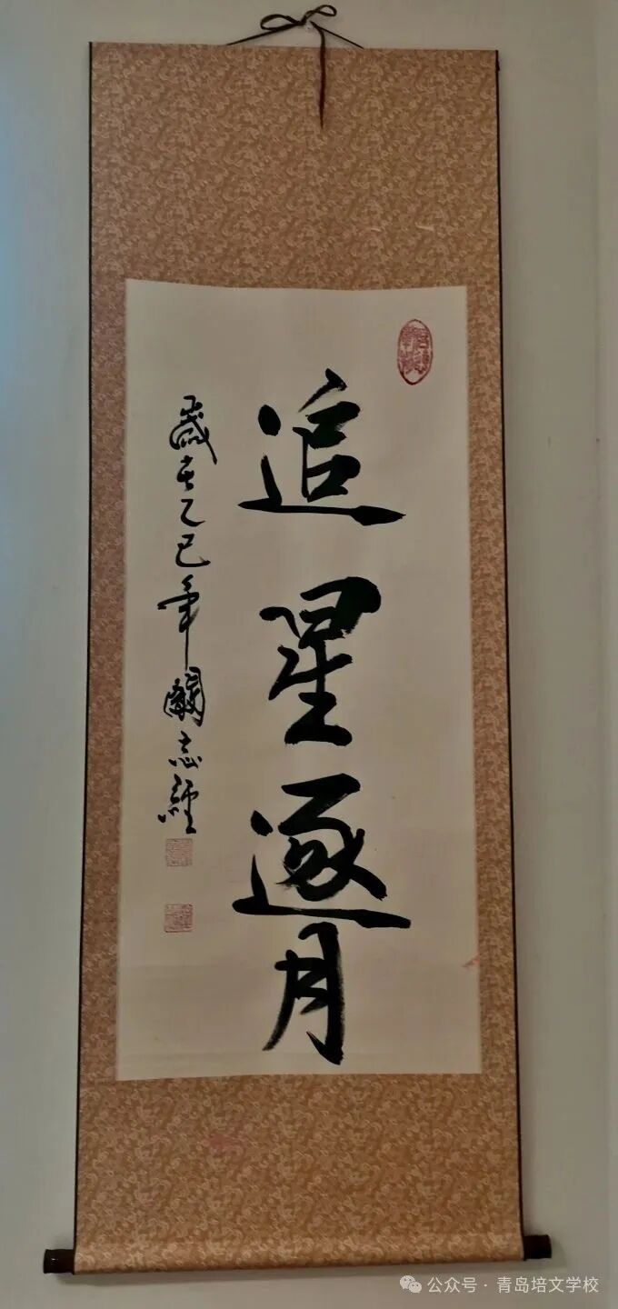 作为回礼,阚教授为同学们书写了“追星逐月”“鹏程万里”八个大字,每一笔都刚劲有力,每一划都饱含着对同学们的美好期许。