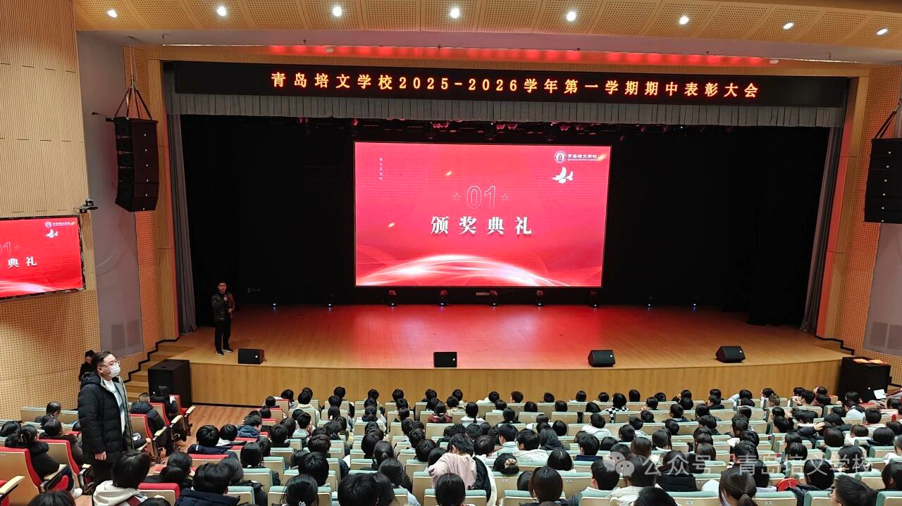 12月3日下午,青岛培文学校2025-2026学年第一学期期中考试表彰大会在海业大礼堂隆重举行。本次大会由高一年级主任周金东和高二年级主任马淑敏主持,现场气氛热烈,全体师生齐聚一堂,共同见证这一重要时刻。